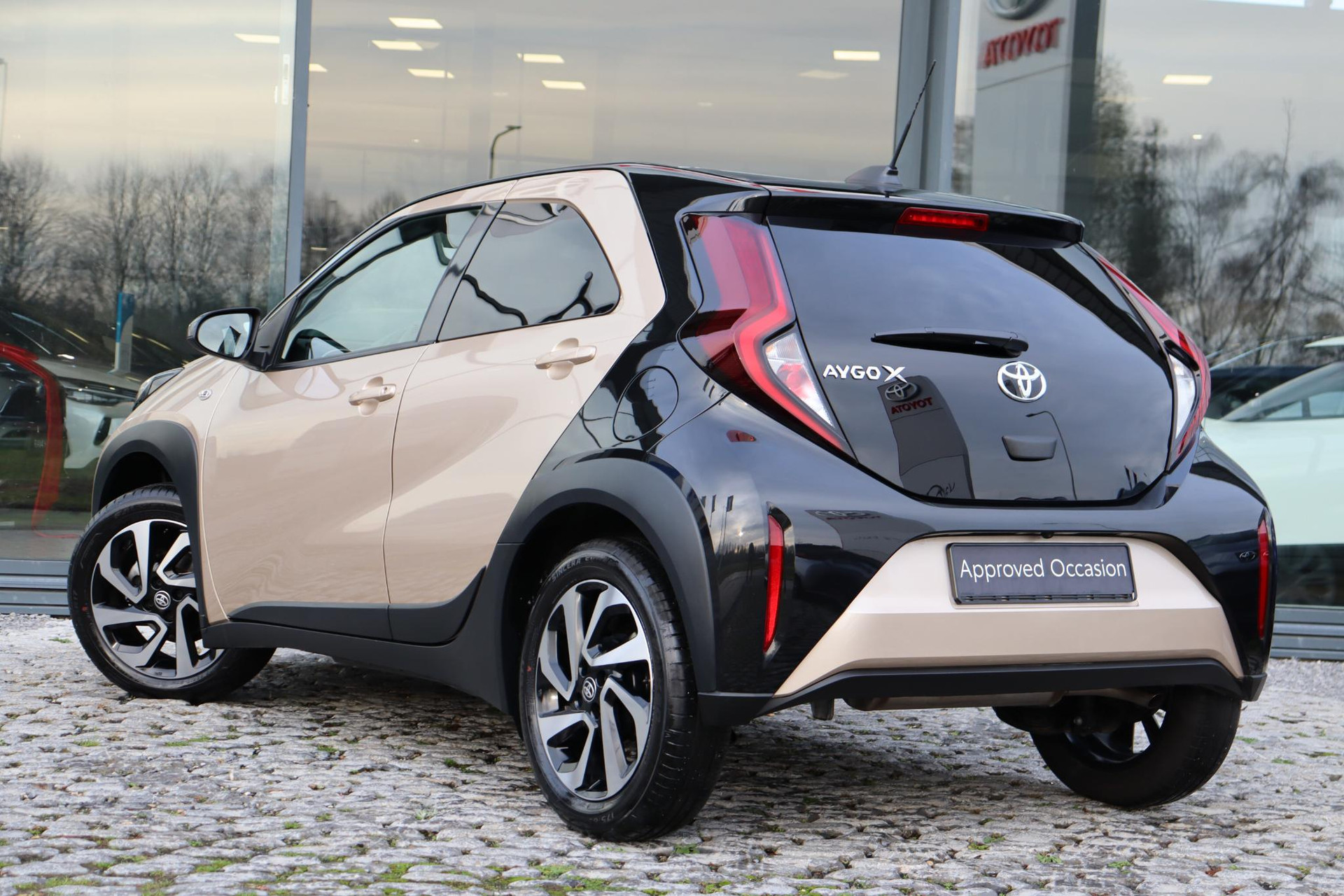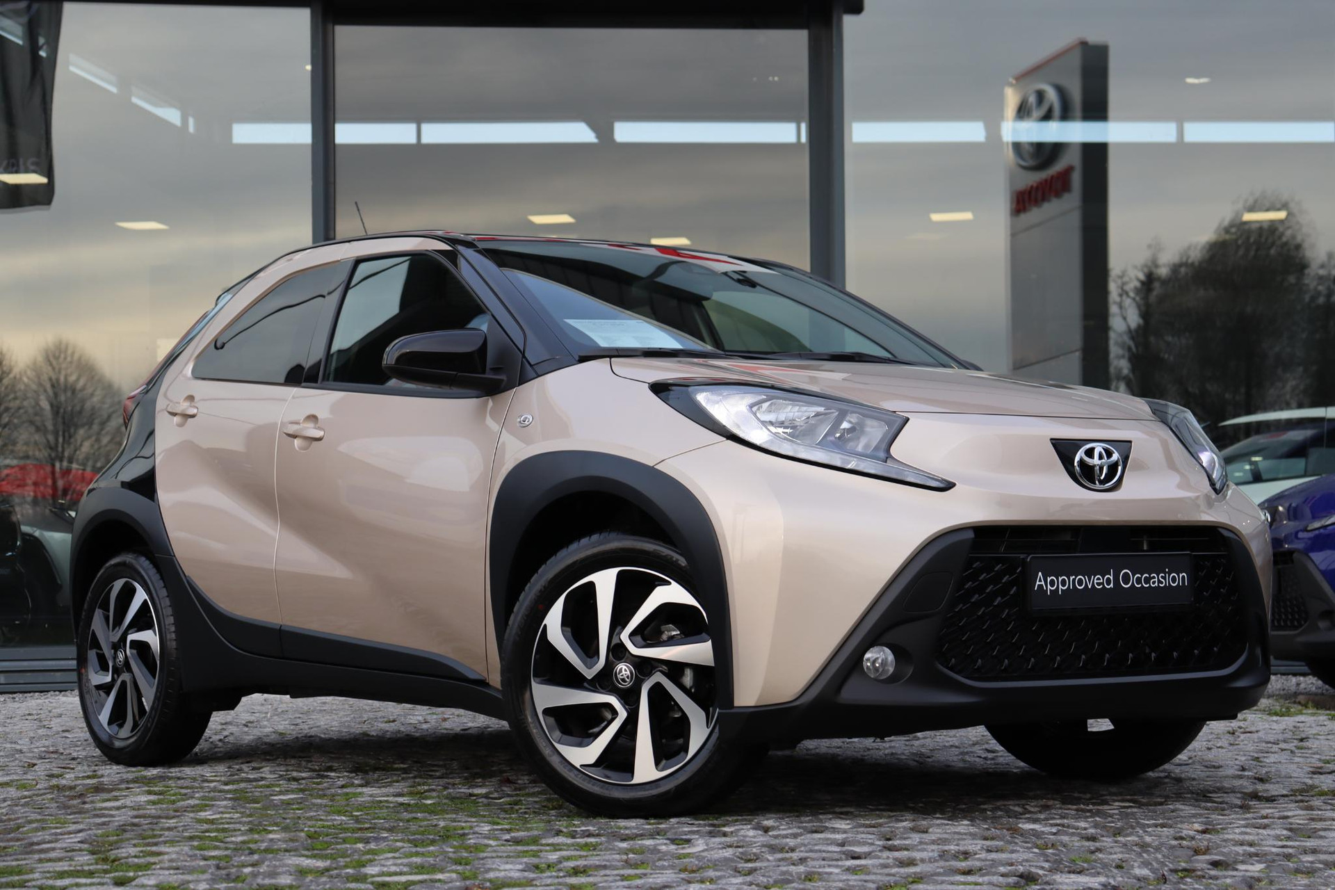 De Toyota Aygo X 1.0 handgeschakeld Pulse uitvoering in de prachtige kleur Ginger Beige met een Zwart dak. Bij de Pulse uitvoering krijgt u veel opties en extra's zoals: Stoelverwarming, Achteruitrijcamera, Apple-carplay, Android-auto, Lichtmetalen velgen, Privacy glass, Airconditioning, LED verlichting, Mistlampen, Bestuurderstoel in hoogte verstelbaar, Elektrisch verstelbare buitenspiegels, Elektrische ramen voor, DAB Audio, en nog veel meer!!