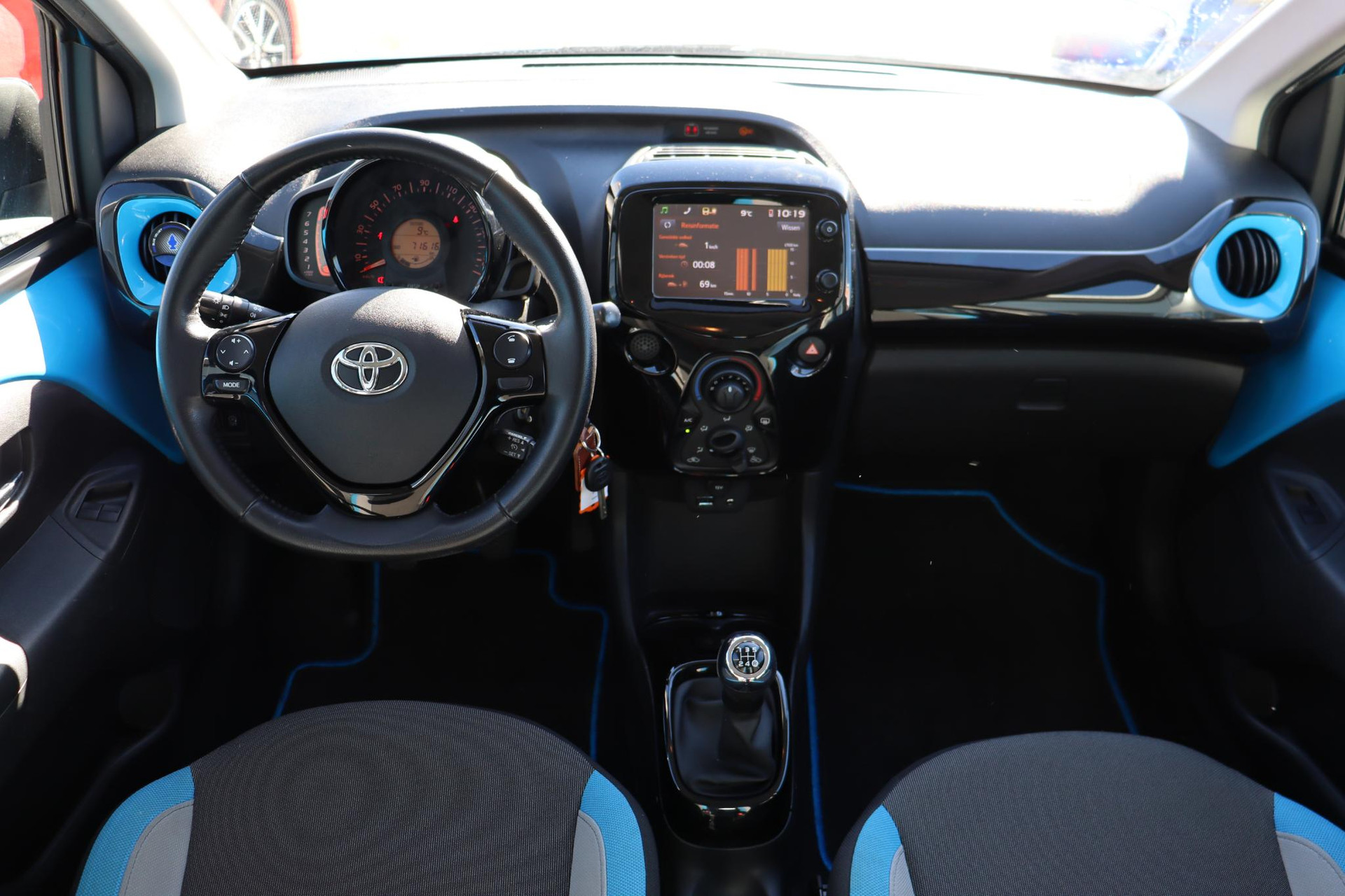 Bij ons op voorraad! Deze prachtige Aygo 1.0 VVT-i X-Cite! Deze Aygo is geleverd in de prachtige kleur Cyan Splash Blue Metallic. Deze Cyan Aygo is nieuw door ons geleverd en onderhouden geweest! Daarbij is deze aygo ook leuk uitgerust. Zo heeft hij een parkeercamera, In hoogte verstelbare bestuurdersstoel, Airco, Speedlimiter en nog veel meer!