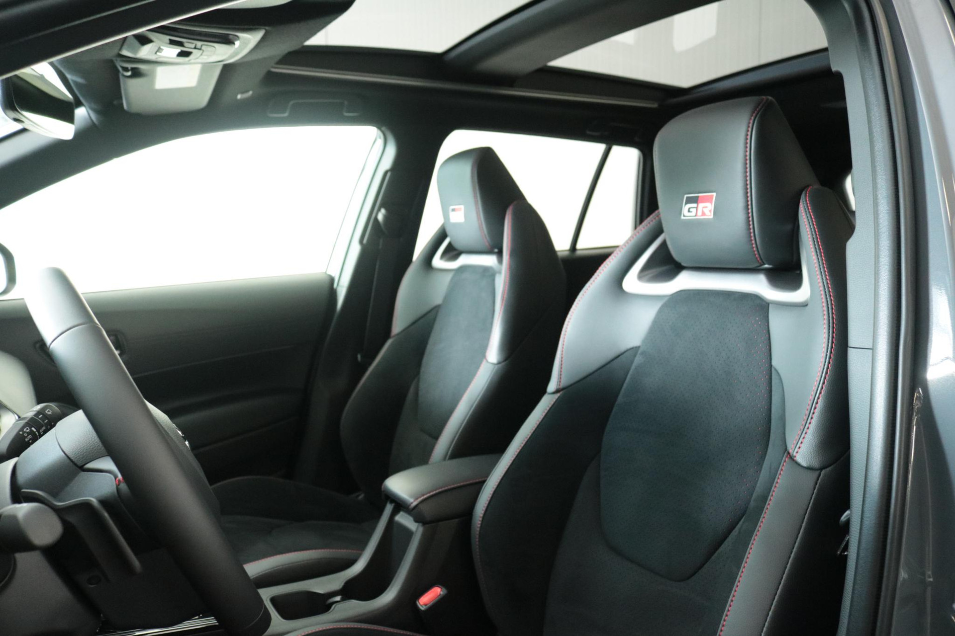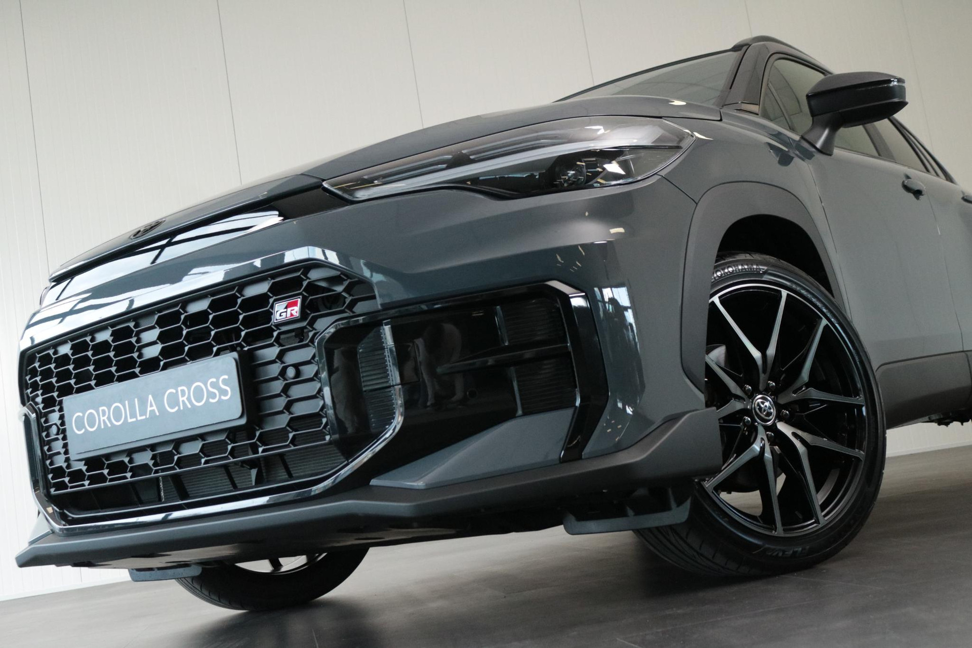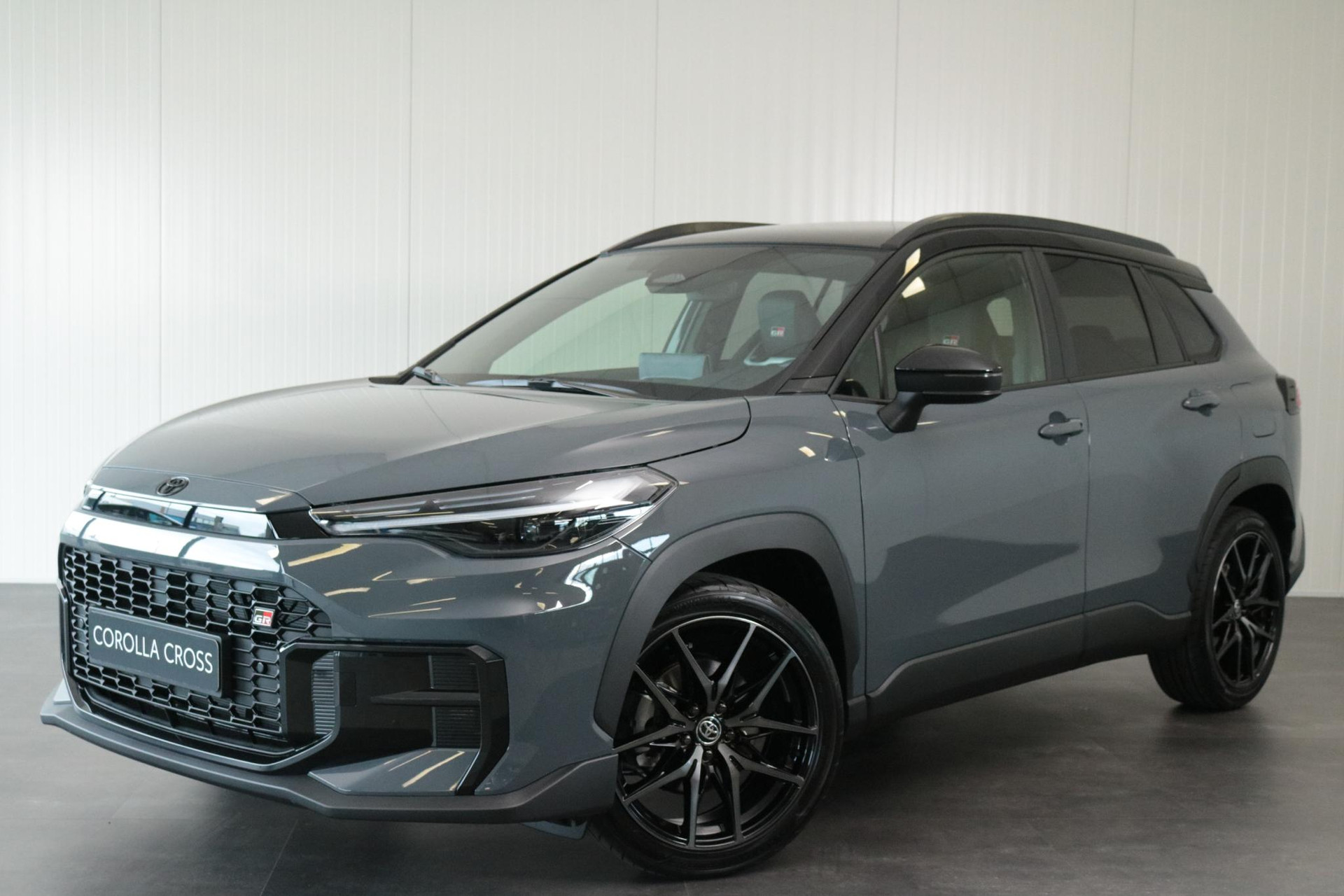 De Toyota Corolla Cross hybrid 200 GR sport in de kleur Storm Grey metallic met zwart dak. Deze Sportieve Corolla Cross is onder andere voorzien van: GR Sport Plus Pack, Blind Spot monitor, JBL audio systeem, Panorama dak, Parkeer sensoren voor en achter, Stoelverwarming, Stuurverwarming, Prachtige 19 inch licht metalen velgen, elektrische achterklep, Keyless entry en nog veel meer!