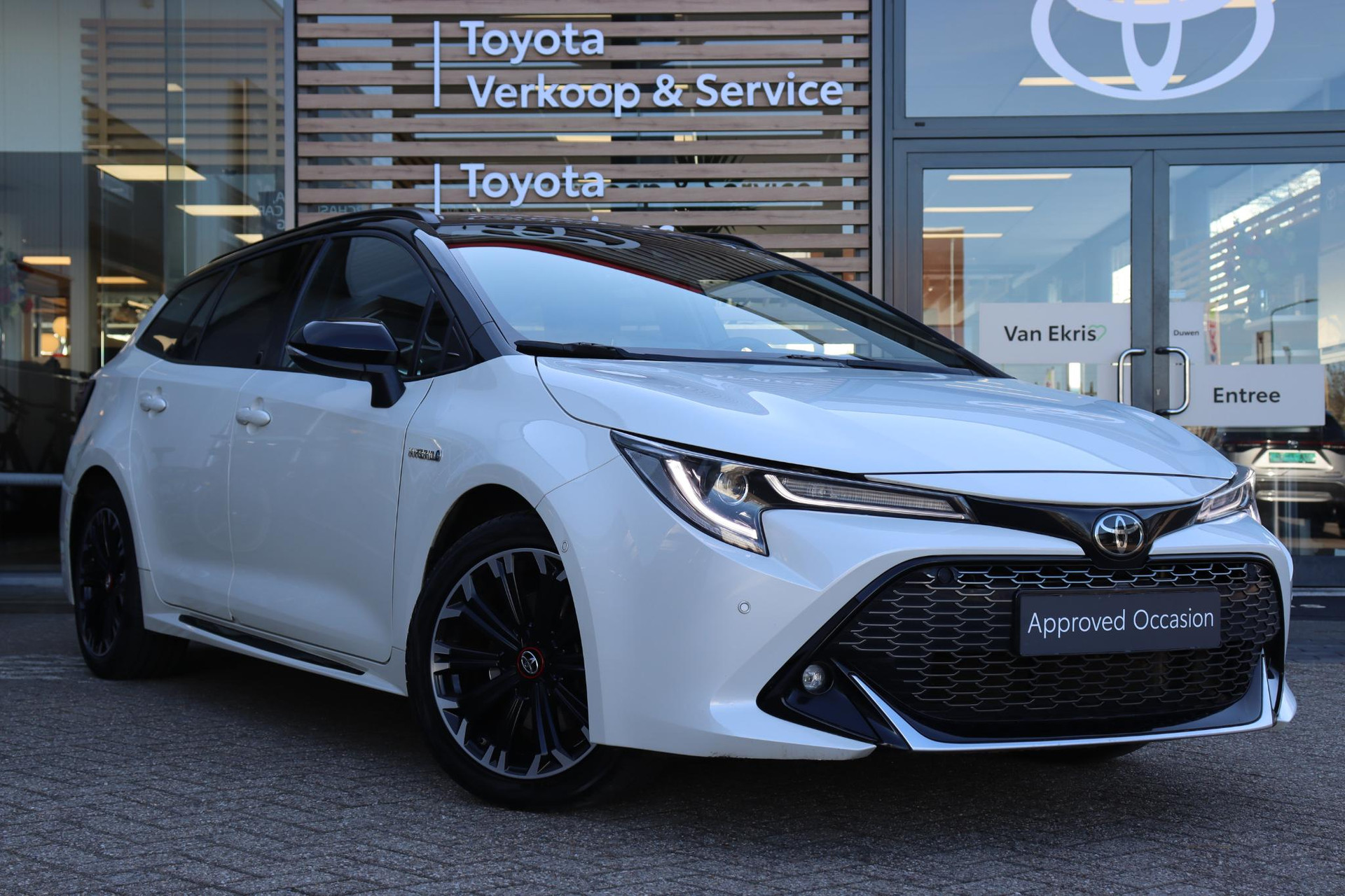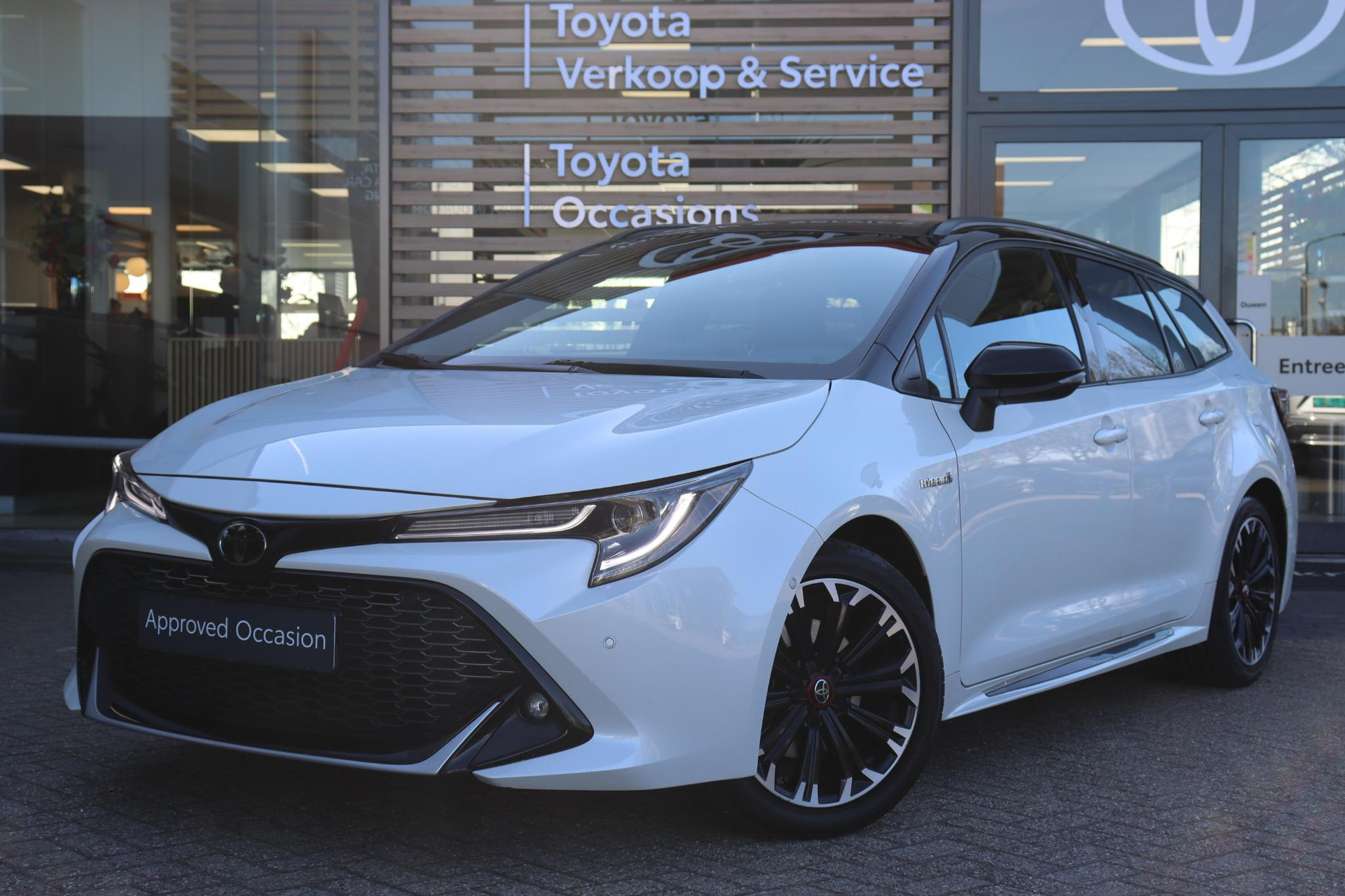 Deze Toyota Corolla Touring Sports 2.0 Hybrid in de keur Pearl White/Zwart dak. De Corolla Touring Sport is uitgerust met onder andere Apple carplay/Android Auto, DAB radio, Adaptive Cruise Control, Keyless Start/Entry, LED verlichting,  parkeersensoren voor en achter, sportstoelen, en nog veel meer!