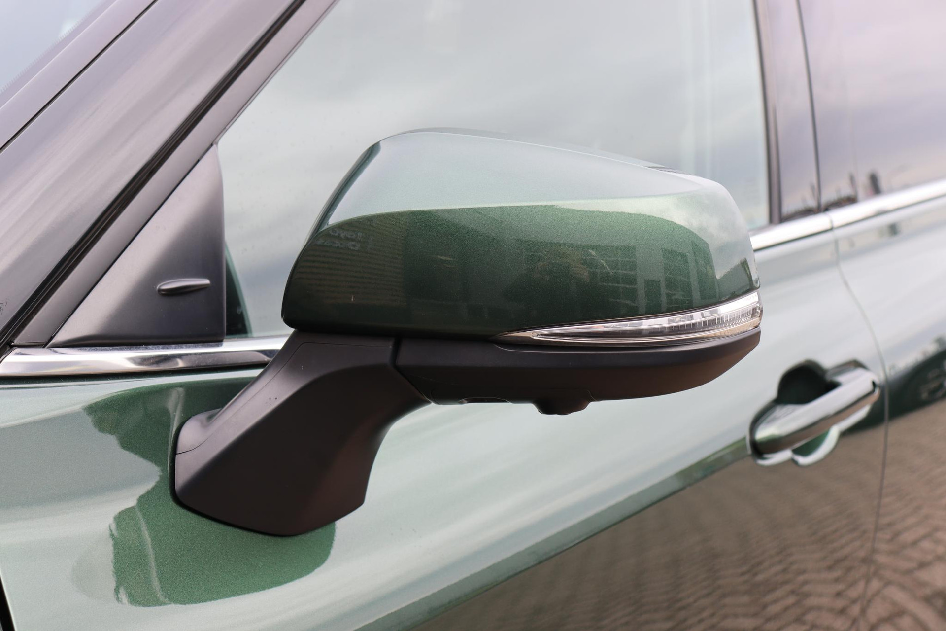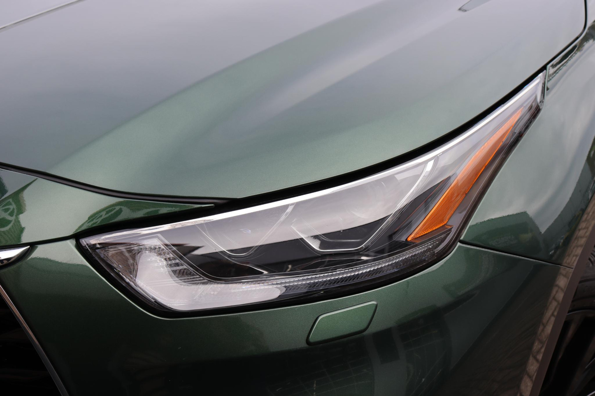 Prachtige mooie uitvoering van de Highlander AWD 7-Perosoons Premium in de kleur Cypress Green metallic i.c.m zwart lederen interieur.