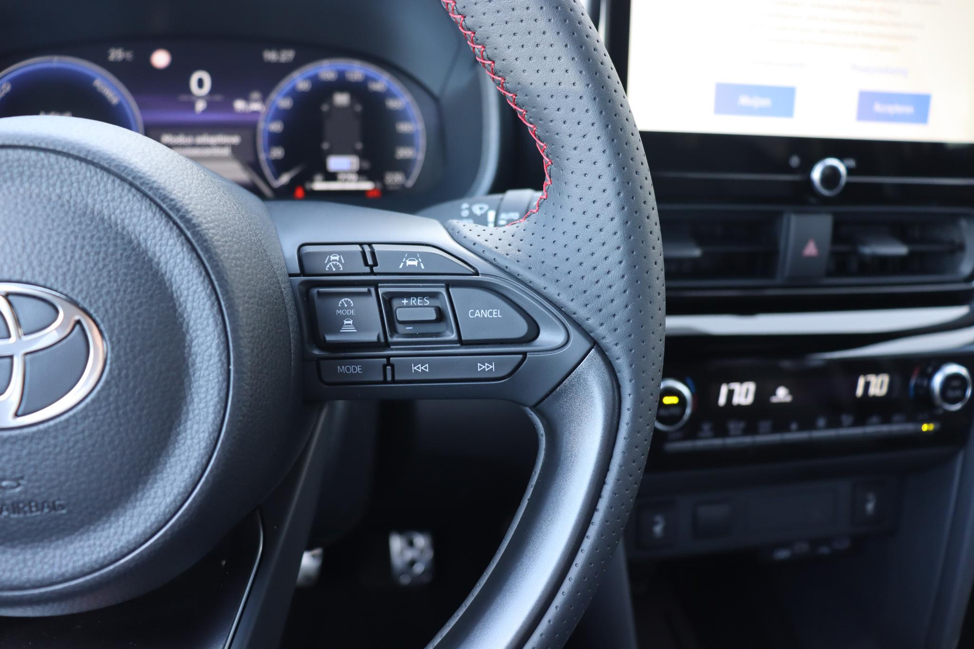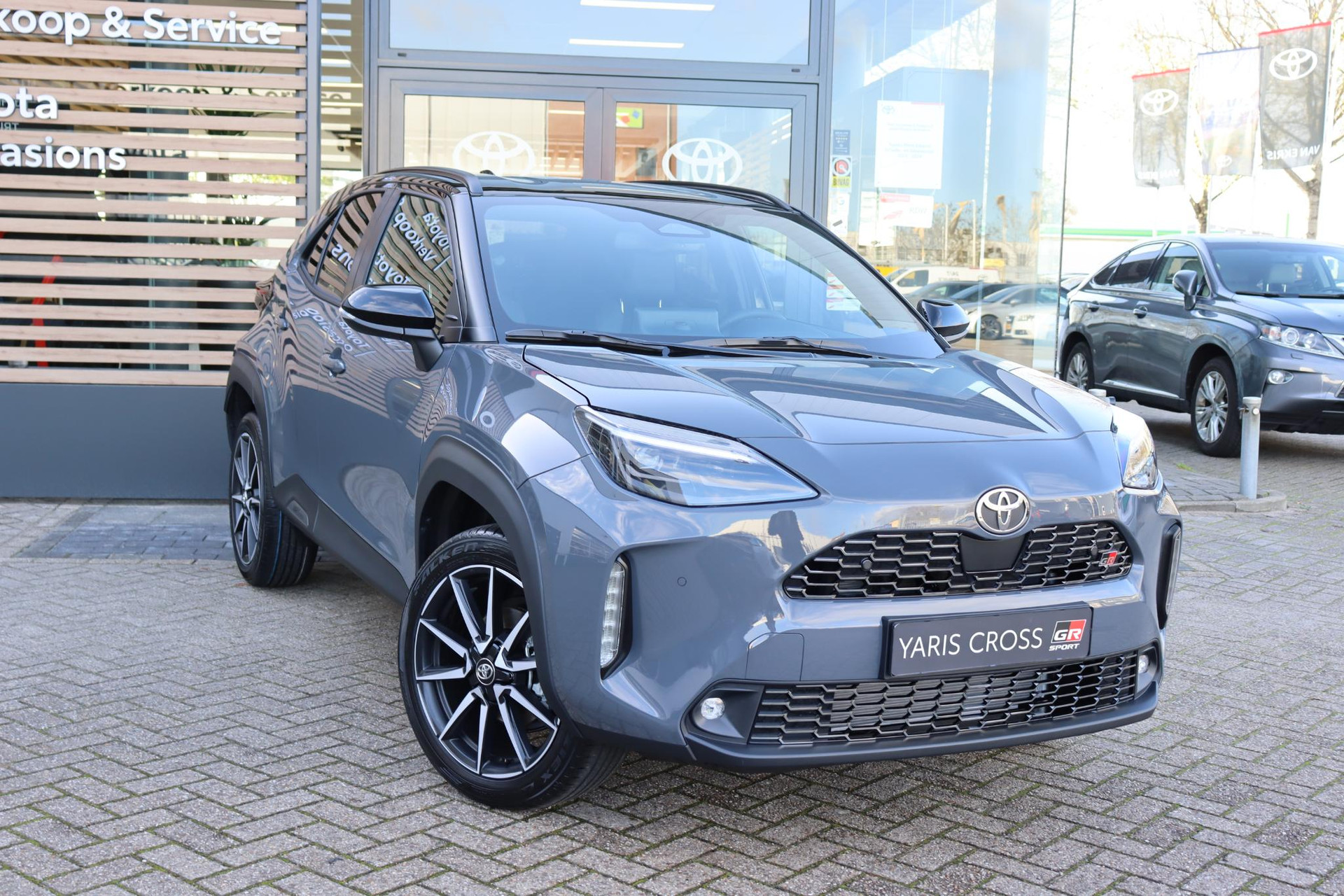 Deze Yaris Cross GR in de nieuwe kleur Storm Grey met zwarte bovenzijde. Deze Yaris Cross is voorzien van rode remklauwen wat deze GR Sport uitvoering net even anders maakt. Rijk uitgerust met onder andere parkeersensoren voor en achter, 18 inch lichtmetalen velgen, Apple Carplay/Android Auto, Adaptive Cruise Control, draadloos telefoonlader, Keyless Start/Entry, stoelverwarming, Blind Spot Monitor, en natuurlijk de GR Sport Detail op het interieur en exterieur en meer!