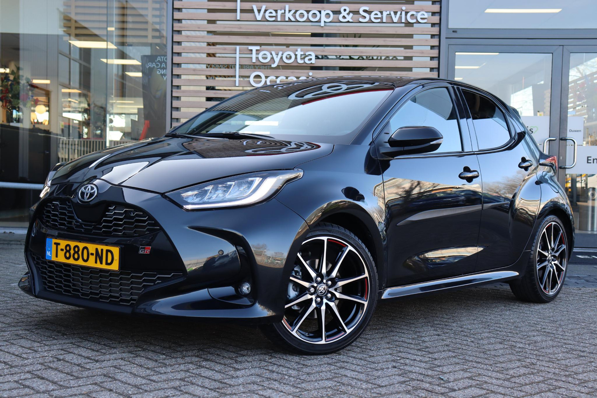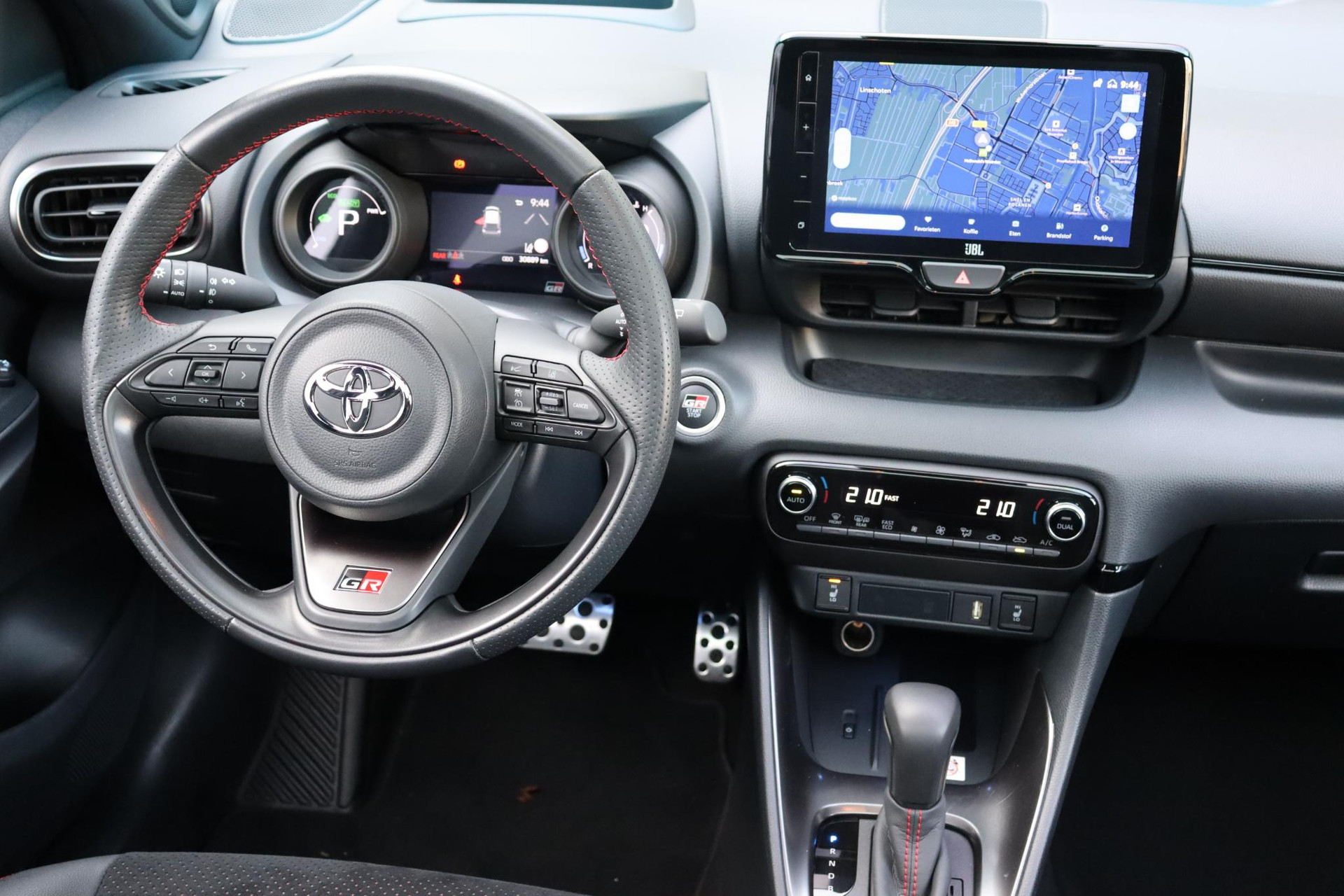 Extra rijk uitgeruste Toyota Yaris 1.5 Hybrid GR-Sport in de kleur Night Sky Black Metallic met onder andere: