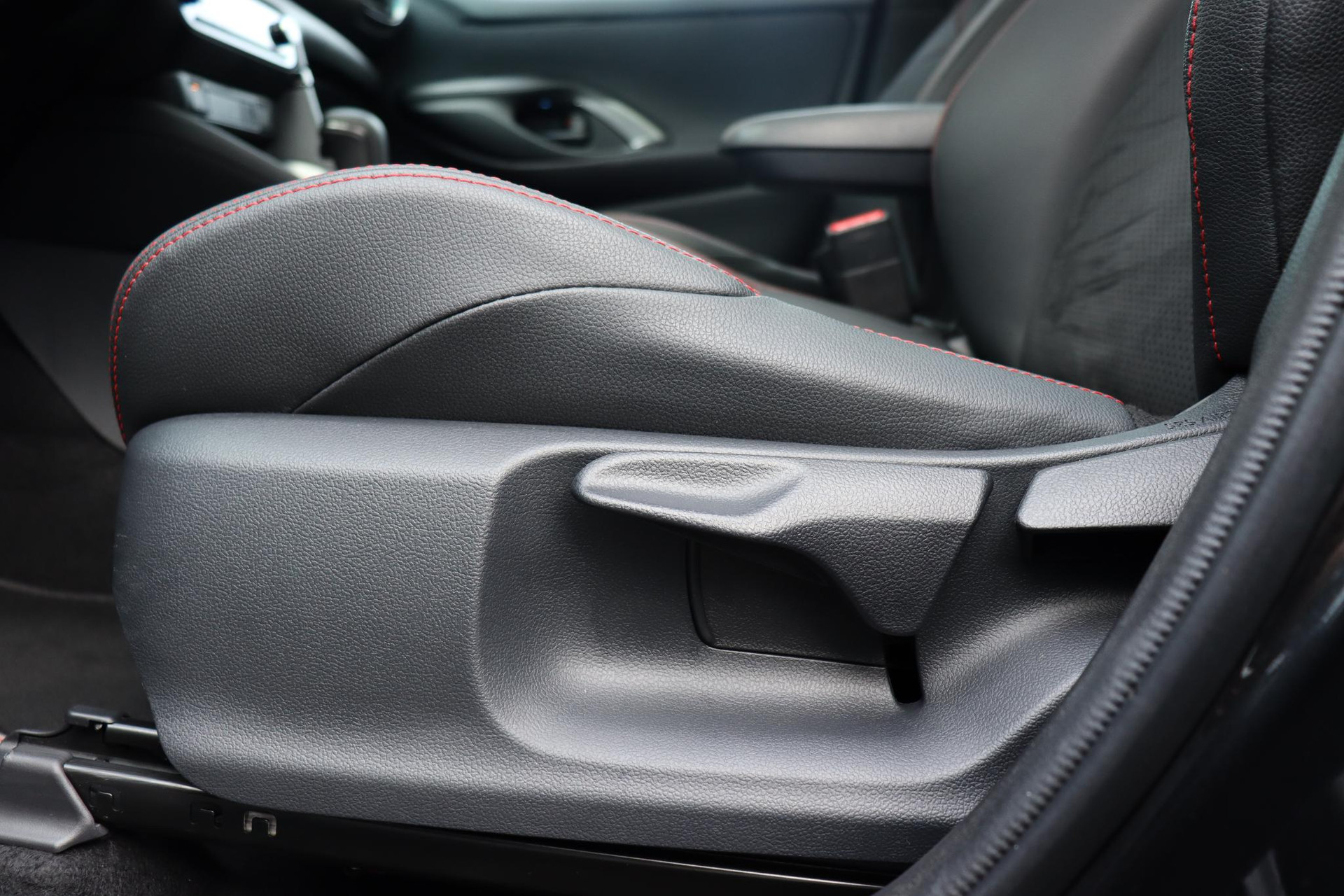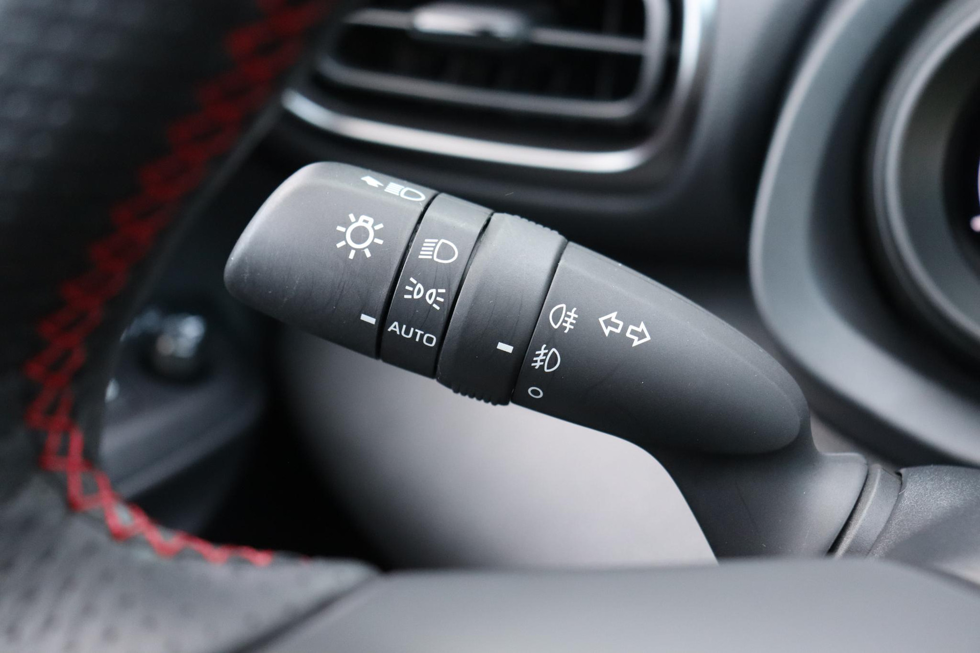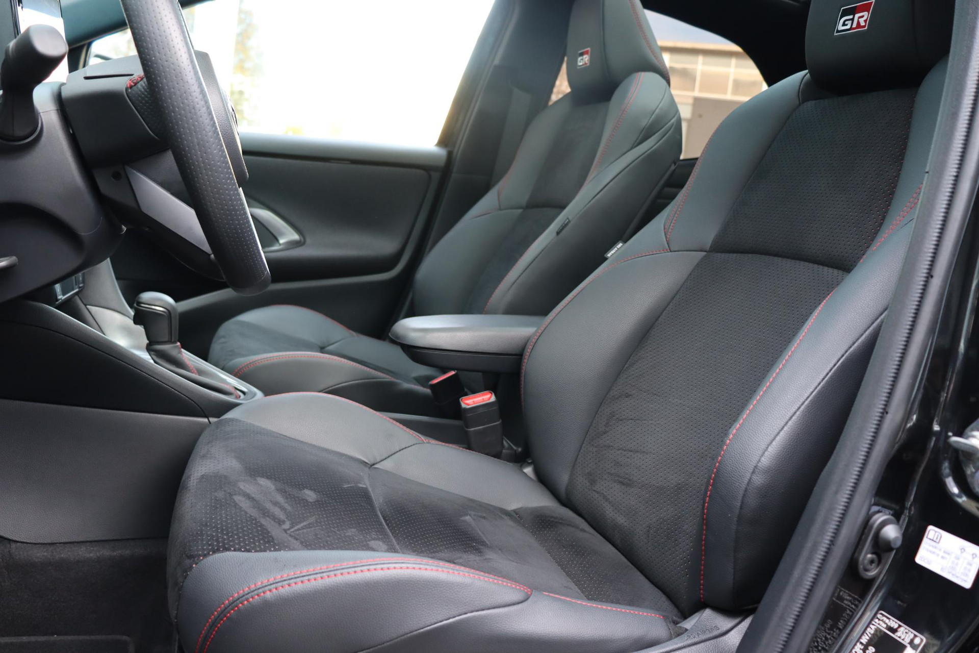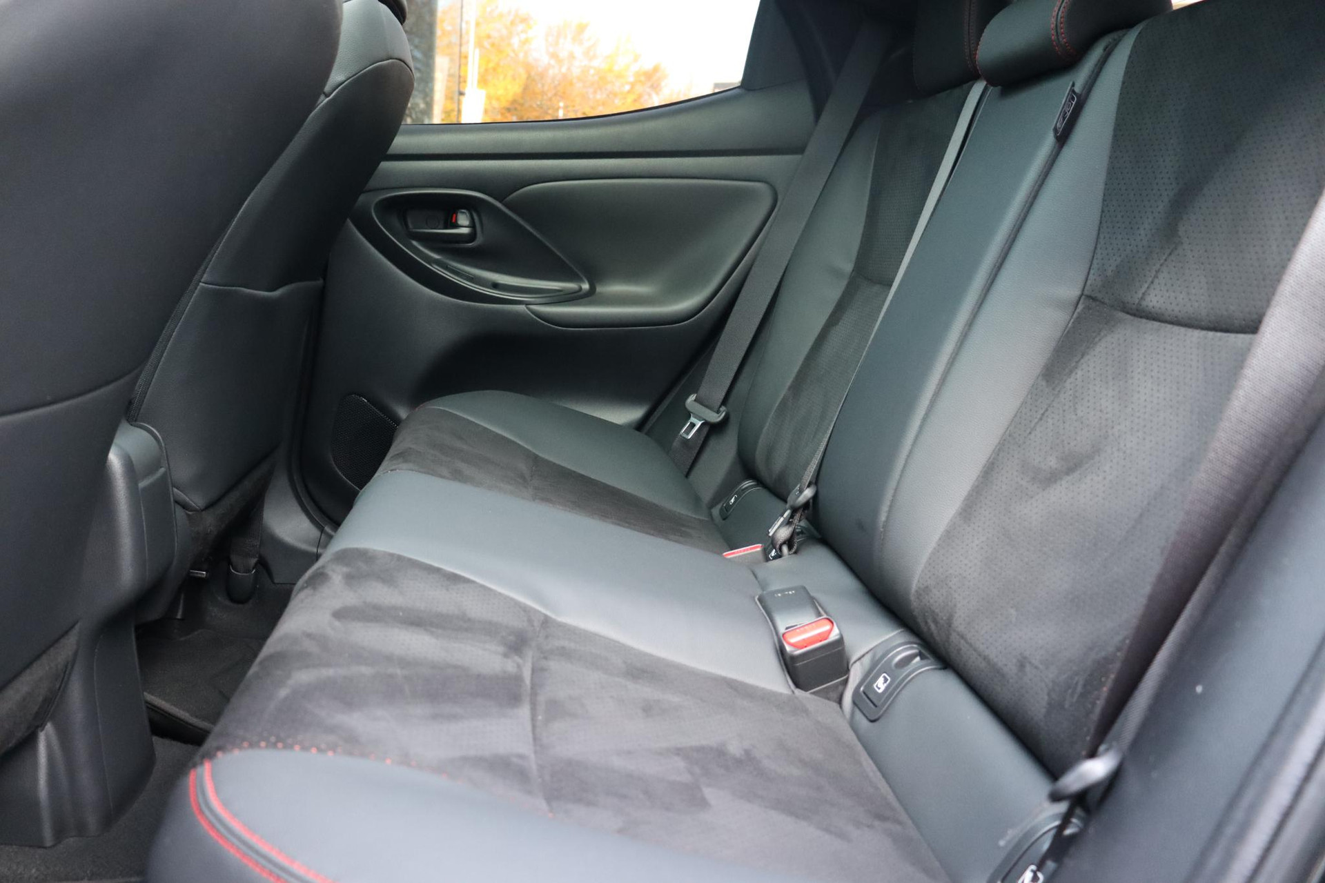 • Kleur interieur Suede bekleding met rode stiksels